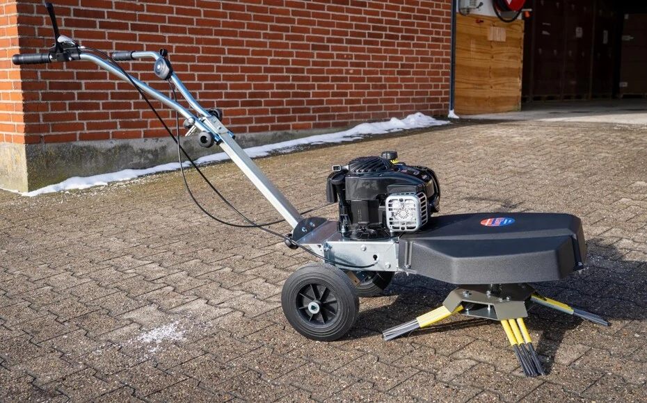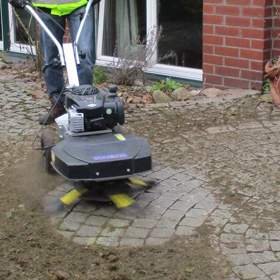 Our Greenbuster Pro 66 can do it all in one and the same workflow. The powerful steel-brushes removes unwanted weeds between tiles on footpaths, driveways, concrete, parking spaces and the like.